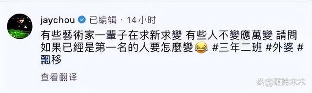 而这些年周杰伦虽然回归生活,比较少发专辑和新歌,但人气犹在。曾在金曲奖前夕发文表示 " 已经是第一名的人要怎么变 ",日常其他发言也被嘲透着一股 " 油腻 ",陷入一种炫耀中。