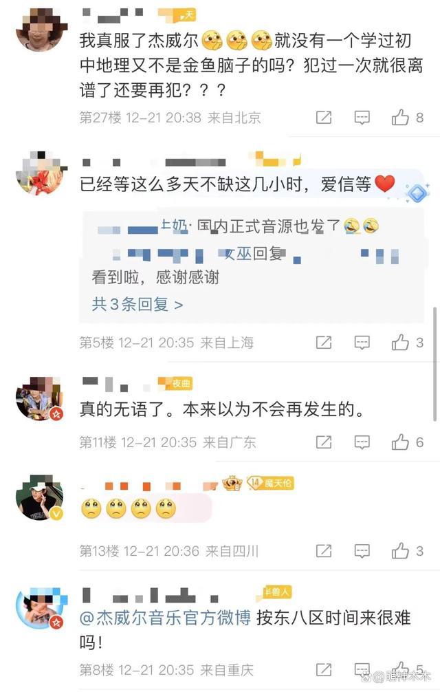 而这次音源偷跑据粉丝称,是因为杰威尔公司没有考虑到时差问题,但有粉丝也提出质疑,为什么多次出现这种问题,新歌发布时间不应该是以国内东八区的时间为准吗?怎么现在反倒是我们不得不和国外时间同步了?