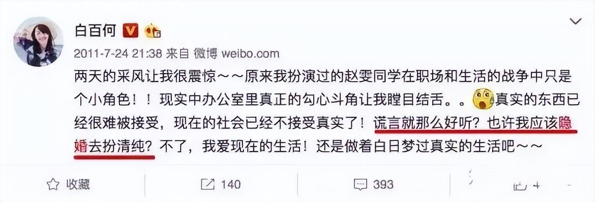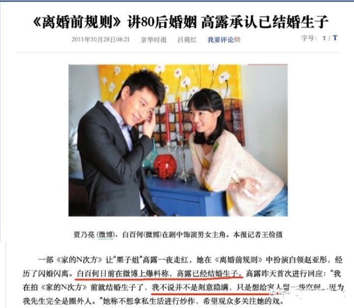 当时高露正在事业的上升期,没有对外公开结婚生子一事,结果白百何一句轻飘飘的话就把这件事给捅破了。这么一搞,让原本有点走红趋势的高露给消停了。