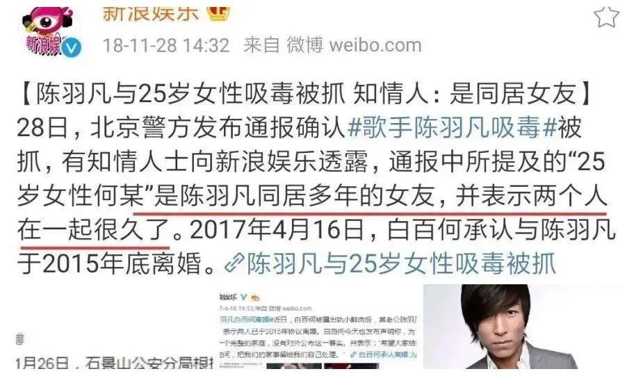 2018年,陈羽凡被曝吸毒,网友扒出他曾在离婚前就与女生发生暧昧关系。报道内容提到“25岁何某某是陈羽凡同居多年的女友” “在一起很久” 多年、很久,还不能充分说明什么吗?