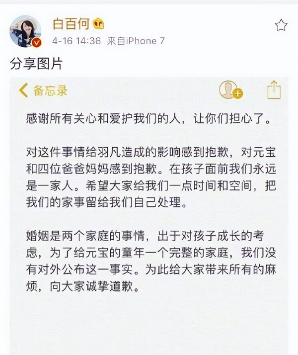 随即,白百何也在微博上发布了道歉声明,承认了自己已经和陈羽凡离婚,并恳求大家给自己一点时间和空间。