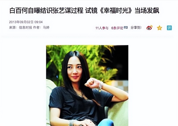 很快,16岁的白百何参加了张艺谋的《幸福时光》试镜。虽然白百何并没有被选上,但是她给张艺谋留下了深刻的影响,并建议她以后可以走表演的道路。