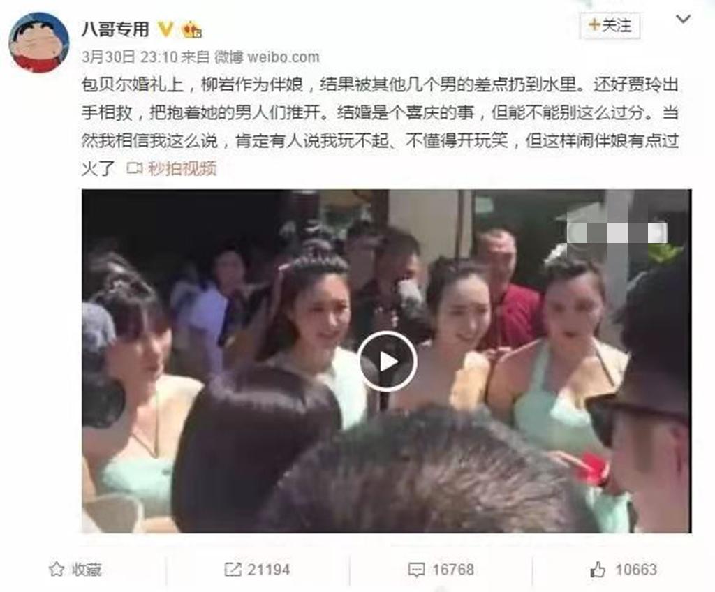 包贝尔婚礼伴郎团柳岩事件(包贝尔为什么要把柳岩丢下水)