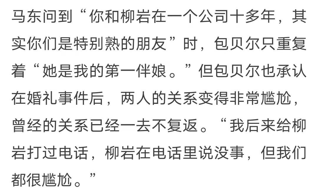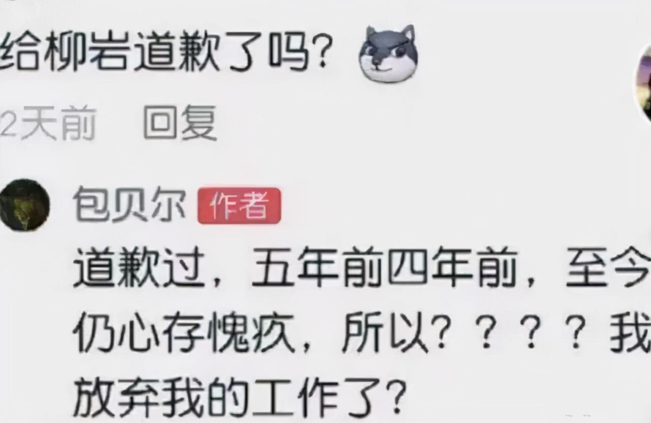 起因是网友毫不客气地在包贝尔视频下方,质问其有没有给柳岩道歉,包贝尔则回复:“道歉过,至今仍心存愧疚,所以????我放弃我的工作了?”