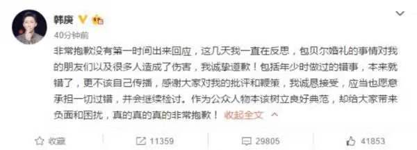 韩庚发了一段话,全文对柳岩只字未提,更像是为了完成对公众的交代,挽回受损的个人形象。