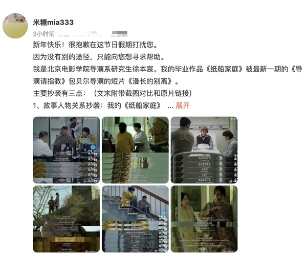 此前,包贝尔参加《导演请指教》,执导的参赛短片《漫长的别离》,被网友列出证据指出从故事人物关系、场景到台词,都和自己的毕业作品有大量雷同之处。