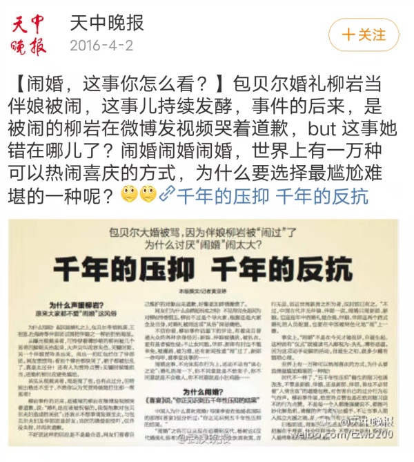 令人大跌眼镜的是,明明是伴郎团的锅,有些冷言冷语夹枪带棒的攻击柳岩,柳岩发声:婚礼是应该被祝福的,我很抱歉。