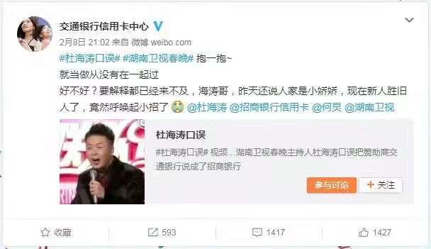 好不容易有了表现机会,结果一出错,杜海涛直接将冠名商的名字念错了。