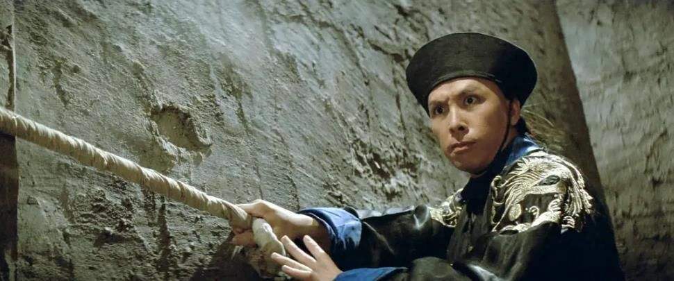 而片中黄飞鸿和纳兰元述的棍战,也在袁和平的巧妙编排之下,成为了华语动作片,最经典的几个武器对打场面之一,在如此狭小的空间里,设计出如此复杂的动作戏,从单棍到超长竹竿、双棍,最终木棍对布棍,简直是一场旷世大战。