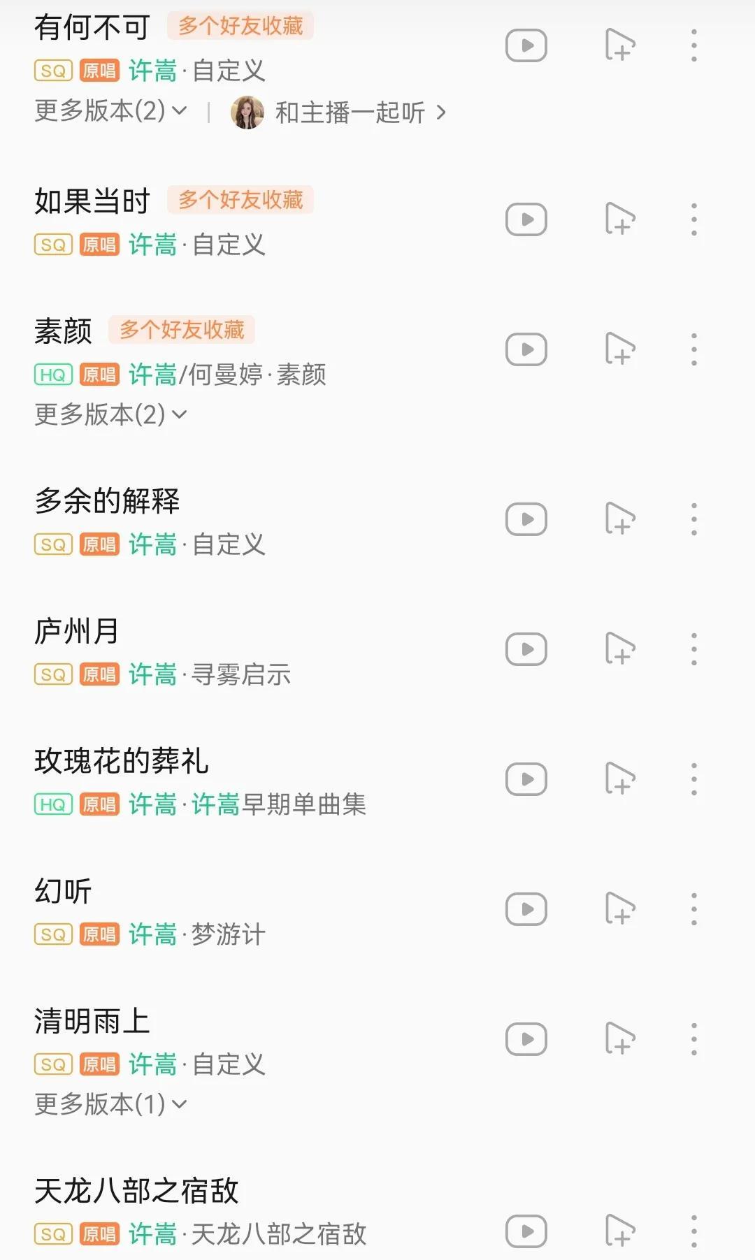 许嵩的《素颜》《灰色头像》《半城烟沙》《有何不可》《如果当时》《玫瑰花的葬礼》《清明雨上》等歌曲,熟悉的歌曲真的太多了,我相信只要旋律一想起,所有90后都能跟着唱吧!
