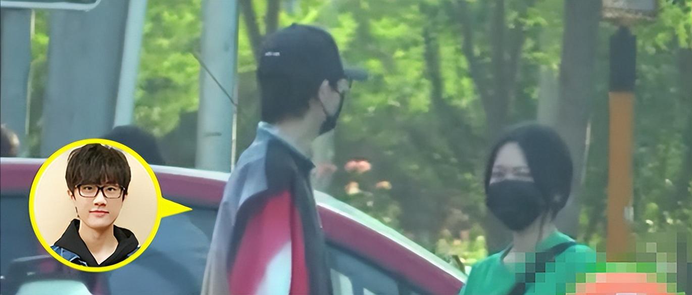 照片中,许嵩穿着一件衬衫,戴着黑口罩黑帽子,十分低调,女子身穿绿色T恤搭配超短裤。