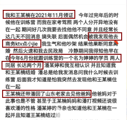 然而,10月4日,王浩楠的妻子小蓉却发布了长文及视频,手撕渣男。