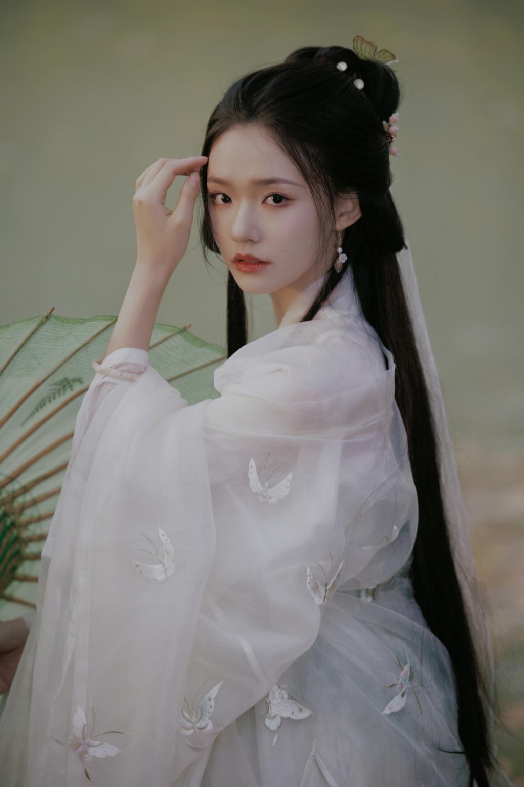 林允的一组美照曝光,她身穿白纱古装仙气十足,手撑淡绿色油纸伞,雪肌红唇清冷又迷人。