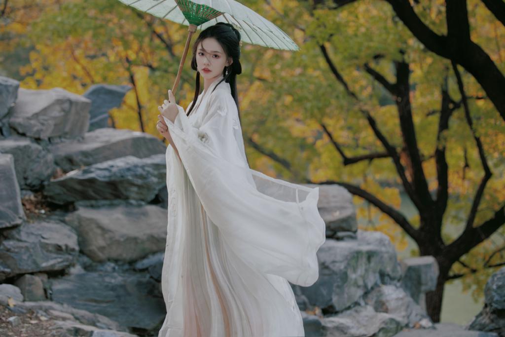 林允穿白色古装仙气十足 手撑纸伞清冷迷人