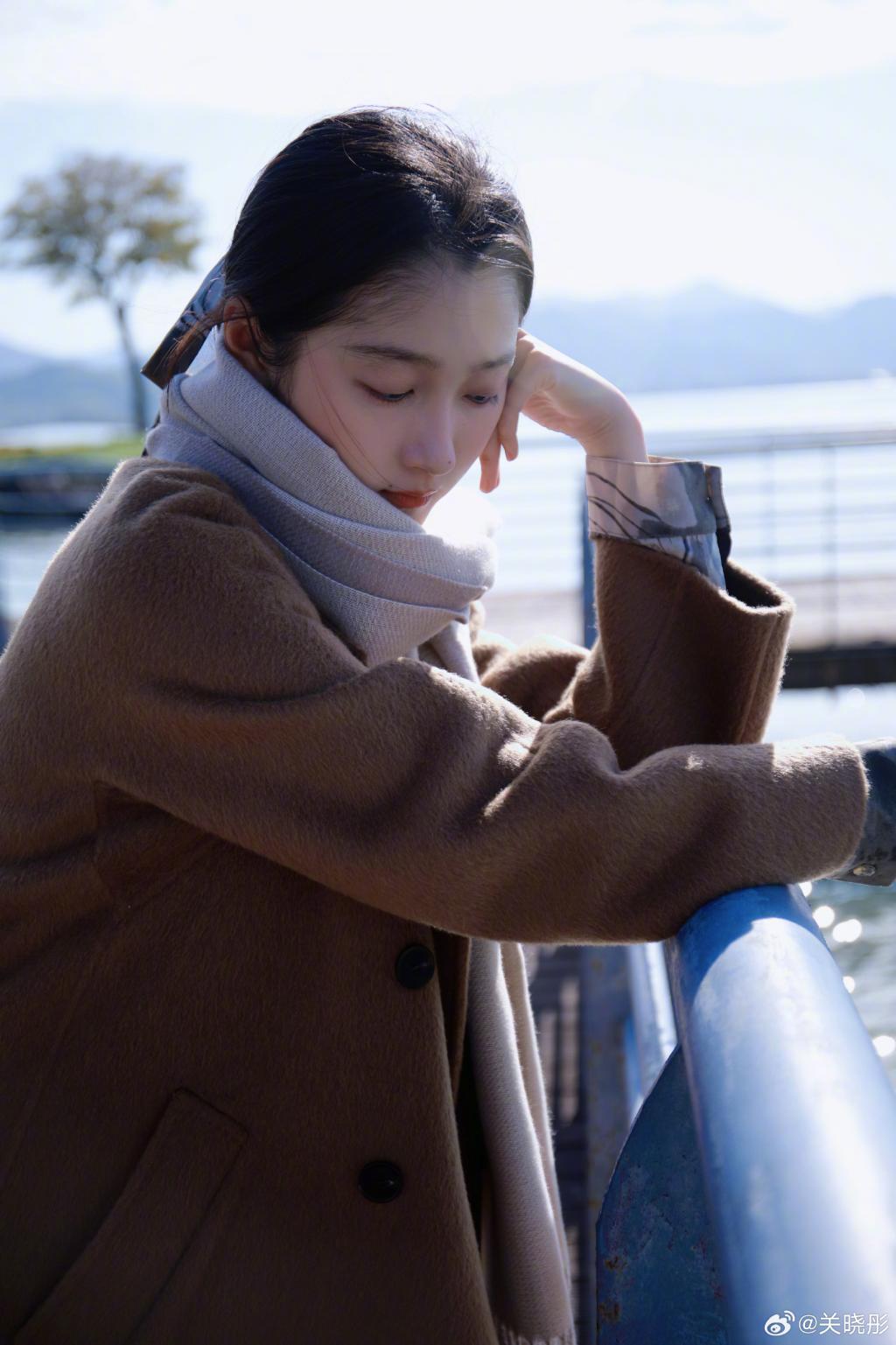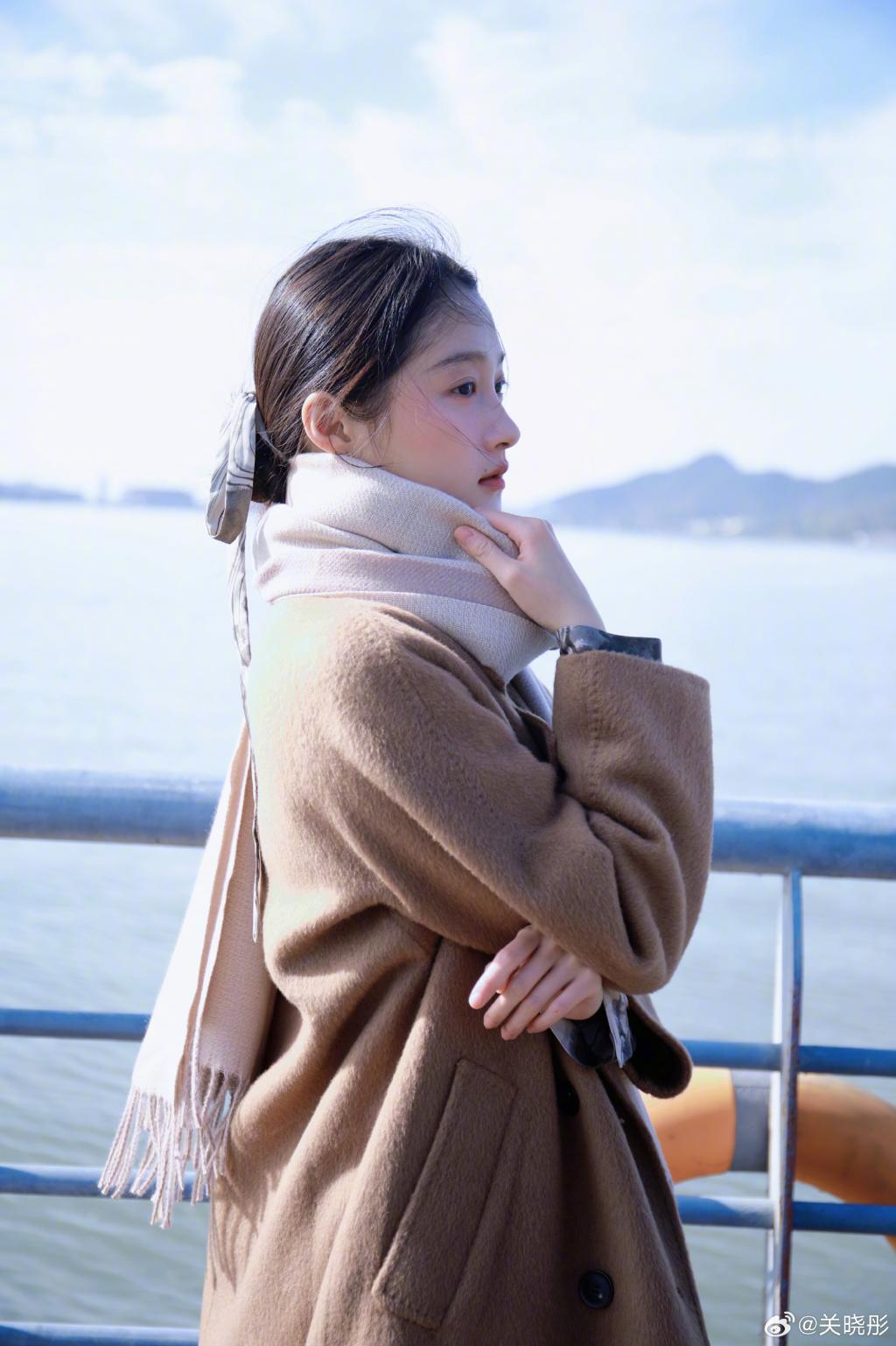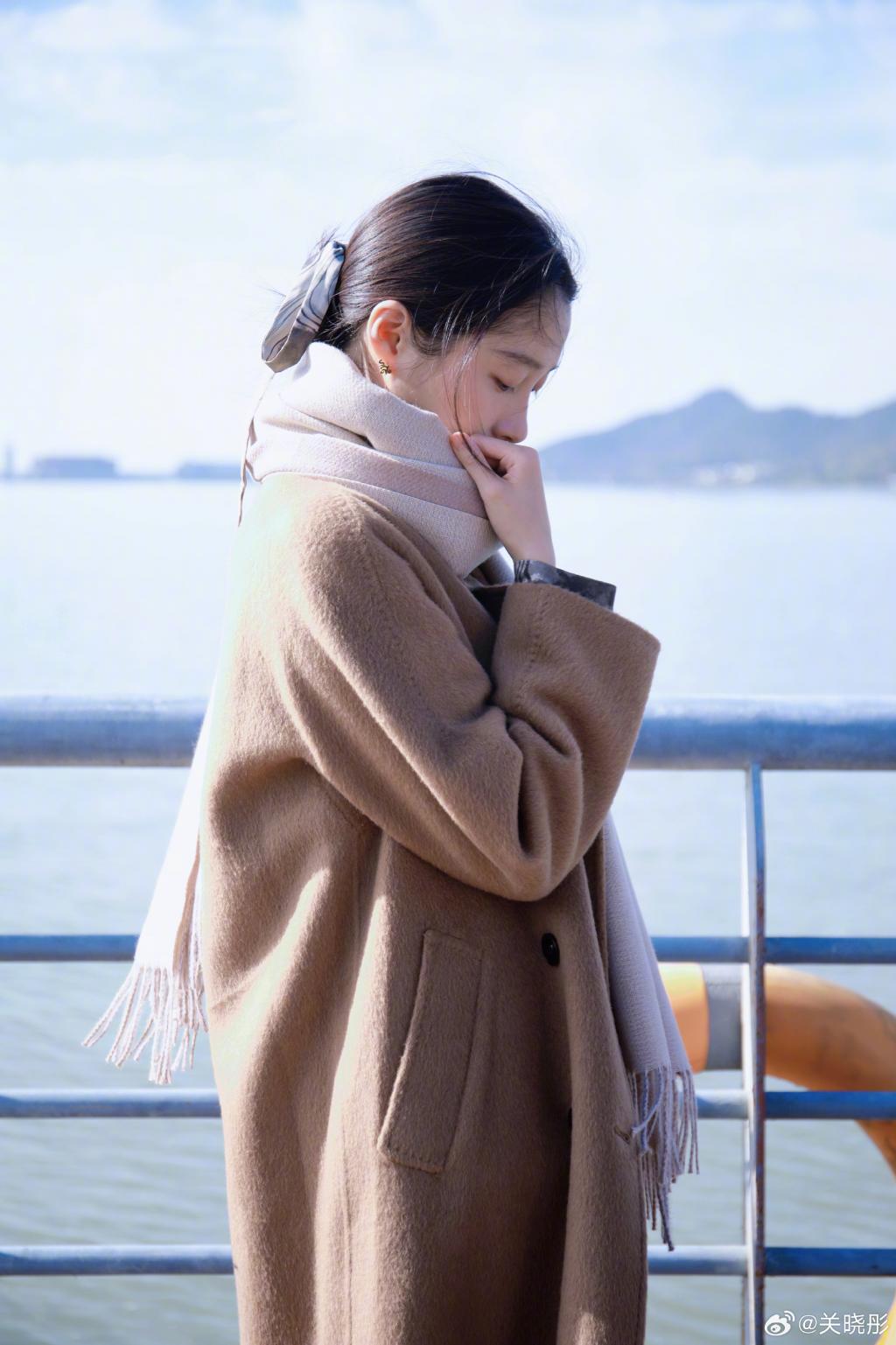 关晓彤穿大衣裹围巾 海边吹风氛围感拉满
