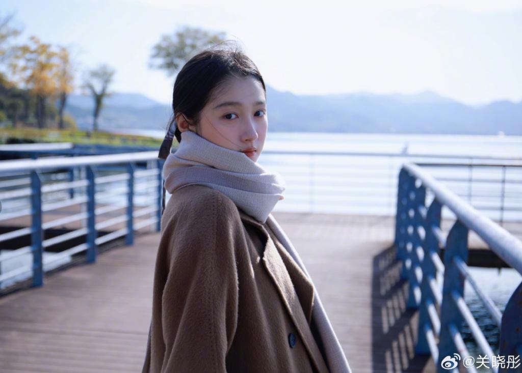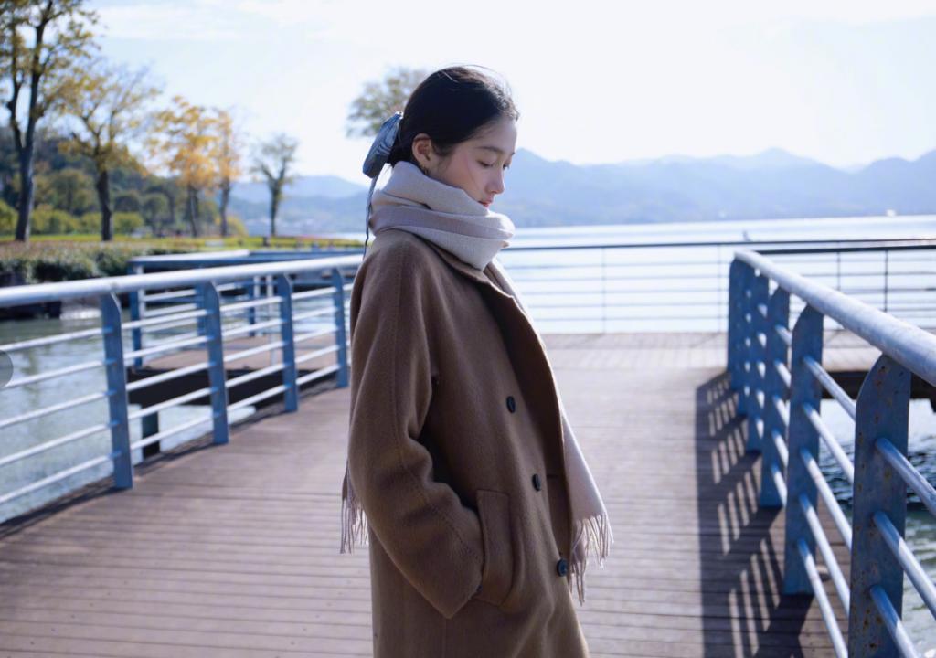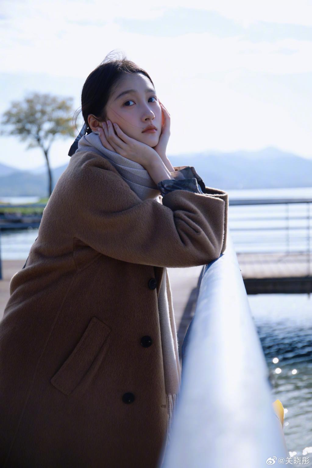 关晓彤穿大衣裹围巾 海边吹风氛围感拉满