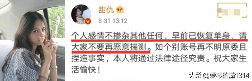 不过,爱情来得太快就像龙卷风,仅仅三个月时间甜仇就在社交平台宣布单身,吃瓜的速度都赶不上王校长的手速。
