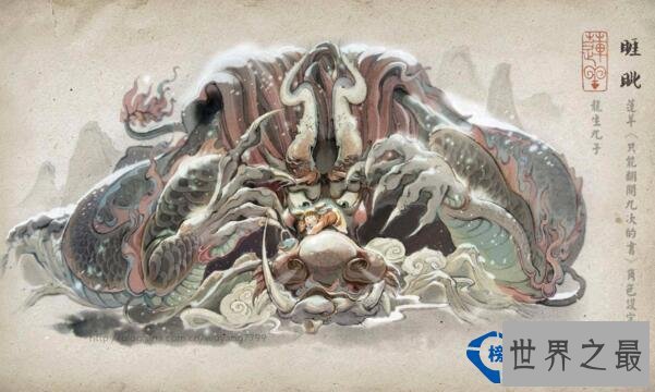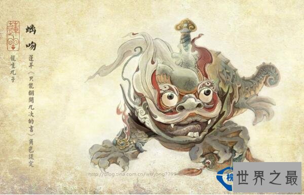 嘲风,形似兽,是老三,平生好险又好望,殿台角上的走兽是它的遗像。嘲风,不仅象征着吉祥、美观和威严,而且还具有威慑妖魔、清除灾祸的含义。嘲风的安置,使整个宫殿的造型既规格严整又富于变化,达到庄重与生动的和谐,宏伟与精巧的统一,它使高耸的殿堂平添一层神秘气氛。 蒲牢,形似盘曲的龙,排行第四,平生好鸣好吼,洪钟上的龙形兽钮是它的遗像。原来蒲牢居住在海边,虽为龙子,却一向害怕庞然大物的鲸鱼。当鲸鱼一发起攻击,它就吓得大声吼叫。人们报据其“性好鸣”的特点,“凡钟欲令声大音”,即把蒲牢铸为钟纽,而把敲钟的木杵作成鲸鱼形状。敲钟时,让鲸鱼一下又一下撞击蒲牢,使之“响入云霄”且“专声独远”。 狻猊,形似狮子,排行第五,平生喜静不喜动,好坐,又喜欢烟火,因此佛座上和香炉上的脚部装饰就是它的遗像。相传这种佛座上装饰的狻猊是随着佛教在汉代由印度人传入中国的这种造型经过我国民间艺人的创造,使其具有中国的传统气派,后来成了龙子的老五,它布置的地方多是在结跏趺坐或交脚而坐的佛菩萨像前。明清之际的石狮或铜狮颈下项圈中间的龙形装饰物也是狻猊的形象,它使守卫大门的中国传统门狮更为睁崃威武。 霸下,又名赑屃,形似龟,是老六,平生好负重,力大无穷,碑座下的龟趺是其遗像。传说霸下上古时代常驮着三山五岳,在江河湖海里兴风作浪。后来大禹治水时收服了它,它服从大禹的指挥,推山挖沟,疏遍河道,为治水作出了贡献。 洪水治服了,大禹担心霸下又到处撒野,便搬来顶天立地的特大石碑,上面刻上霸下治水的功迹,叫霸下驮着,沉重的石碑压得它不能随便行走。 狴犴,又名宪章,形似虎,是老七。它平生好讼,却又有威力,狱门上部那虎头形的装饰便是其遗像。传说狴犴不仅急公好义,仗义执言,而且能明辨是非,秉公而断,再加上它的形象威风凛凛,囚此除装饰在狱门上外,还匐伏在官衙的大堂两侧。每当衙门长官坐堂,行政长官衔牌和肃静回避牌的上端,便有它的形象,它虎视眈眈,环视察看,维护公堂的肃穆正气。 负屃,似龙形,排行老八,平生好文,石碑两旁的文龙是其遗像。我国碑碣的历史久远,内容丰富,它们有的造型古朴,碑体细滑、明亮,光可鉴人;有的刻制精致,字字有姿,笔笔生动;也有的是名家诗文石刻,脍炙人口,千古称绝。而负屃十分爱好这种闪耀着艺术光彩的碑文,它甘愿化做图案文龙去衬托这些传世的文学珍品,把碑座装饰得更为典雅秀美。它们互相盘绕着,看去似在慢慢蠕动,和底座的霸下相配在一起,更觉壮观。 螭吻,又名鸱尾、鸱吻,龙形的吞脊兽,是螭吻老九,口阔噪粗,平生好吞,殿脊两端的卷尾龙头是其遗像。《太平御览》有如下记述:“唐会要目,汉相梁殿灾后,越巫言,‘海中有鱼虬,尾似鸱,激浪即降雨’遂作其像于尾,以厌火祥。”文中所说的“巫”是方士之流,“鱼虬”则是螭吻的前身。螭吻属水性,用它作镇邪之物以避火。 相关推荐:上古十大神龙 上古十大神兽