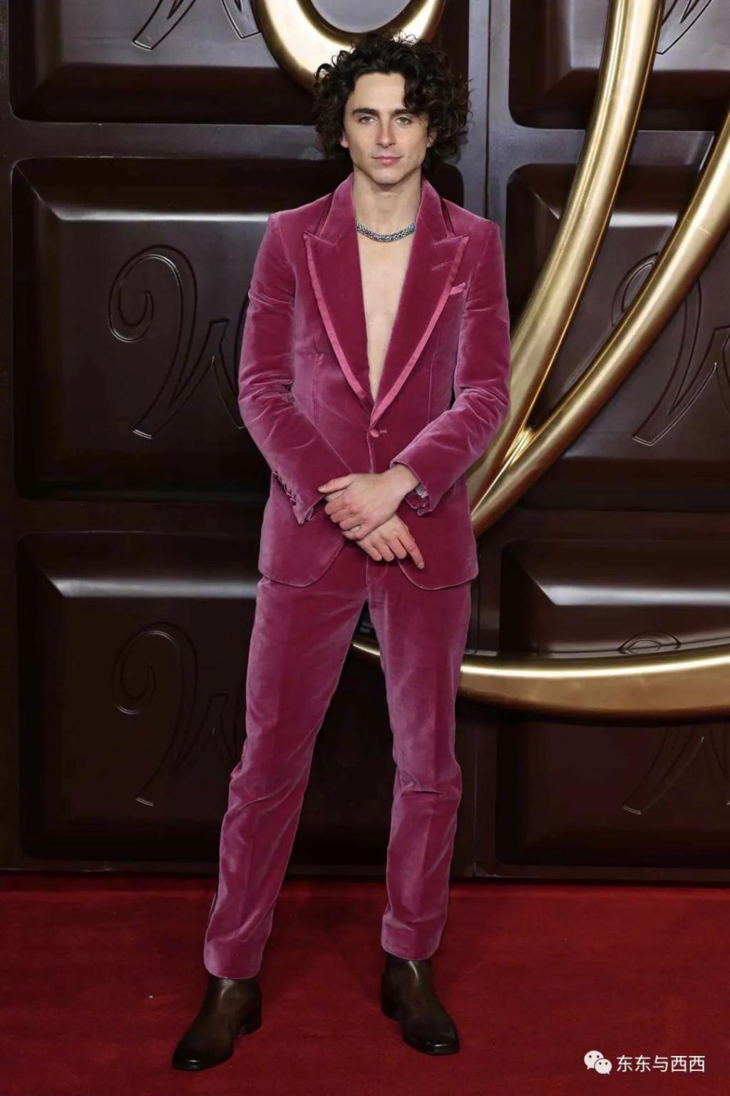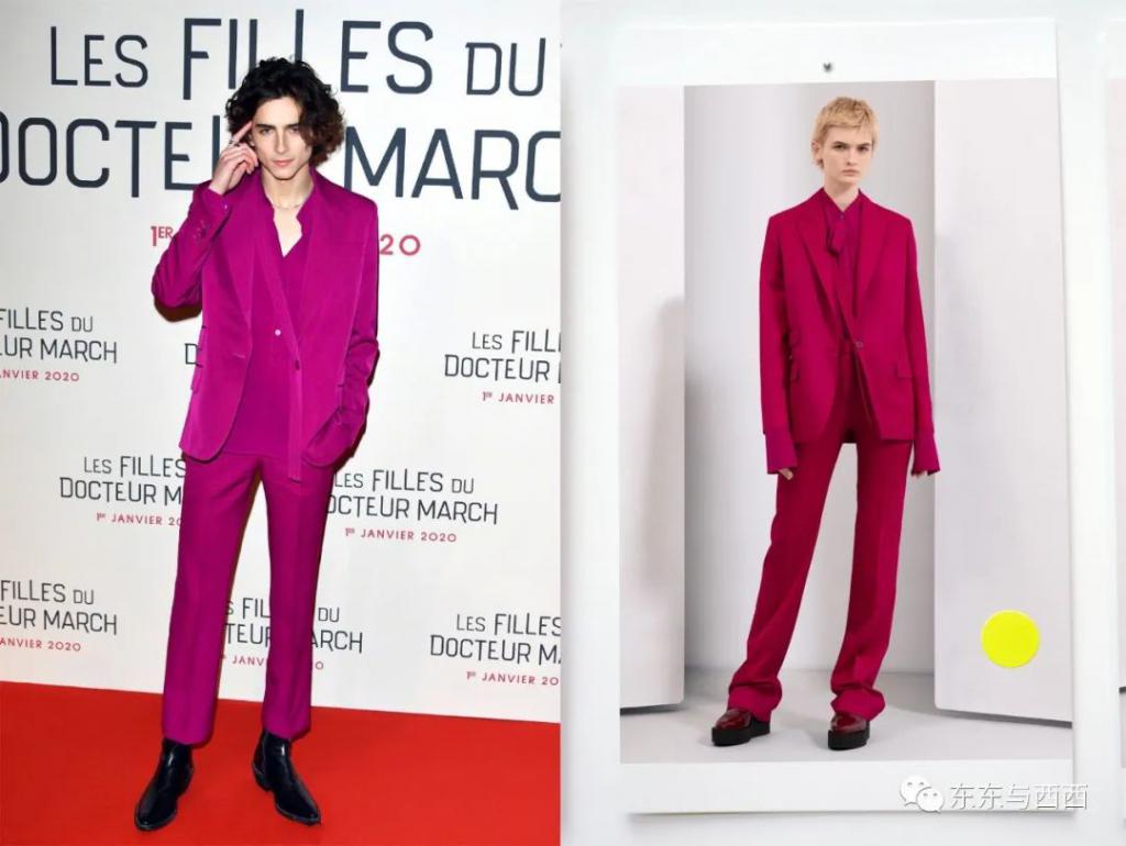 一套玫红色天鹅绒西装,只能说,外媒镜头太歹毒了 ↓↓