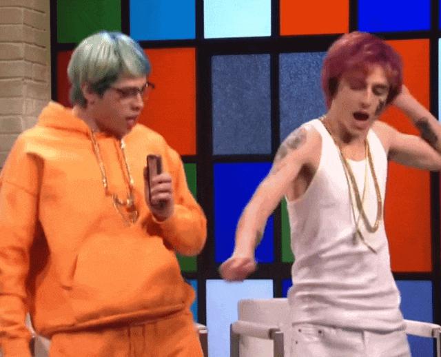 和皮特 · 戴维森戴个大金链子一起模仿嘻哈歌手,不说的话谁能想到那是甜茶,难怪这俩都能得到卡戴珊家女人的喜欢 ↓↓