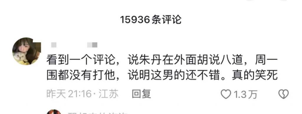 网友继续辣评:朱丹在外面胡说八道,周一围都没有打她,说明这个男人是真不错!