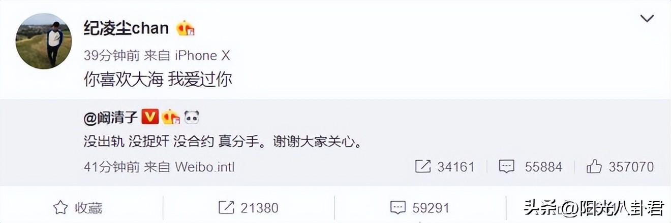 从一位籍籍无名的野模再到顺利进入娱乐圈,阚清子对纪凌尘的帮助极大,但可惜的是,两人的恋情并没有维持太久,2018年7月,两人在微博上承认分手。
