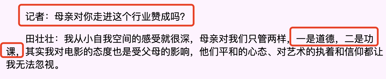 有人曾经问过田壮壮一个问题:“母亲对你走进这个行业赞成吗?”
