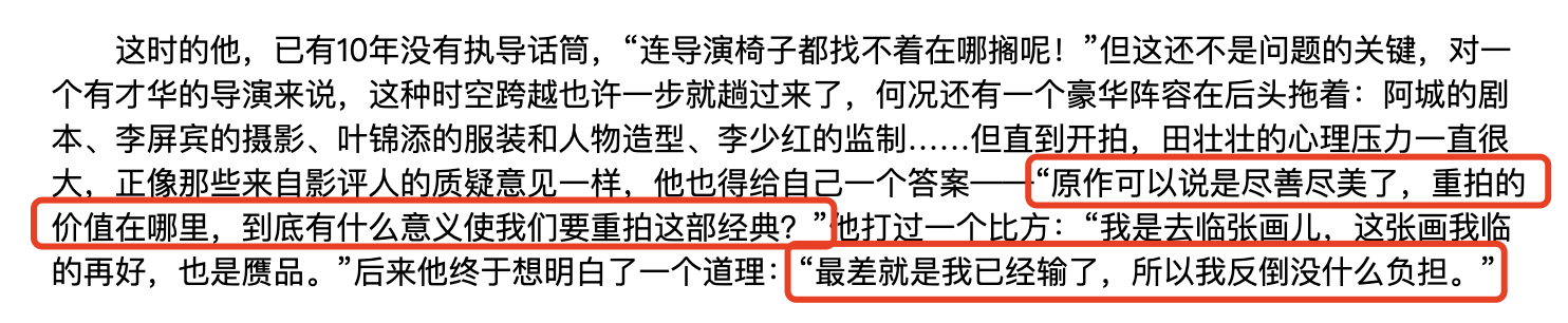 当时,就有记者问田壮壮:“为什么要重拍经典?”