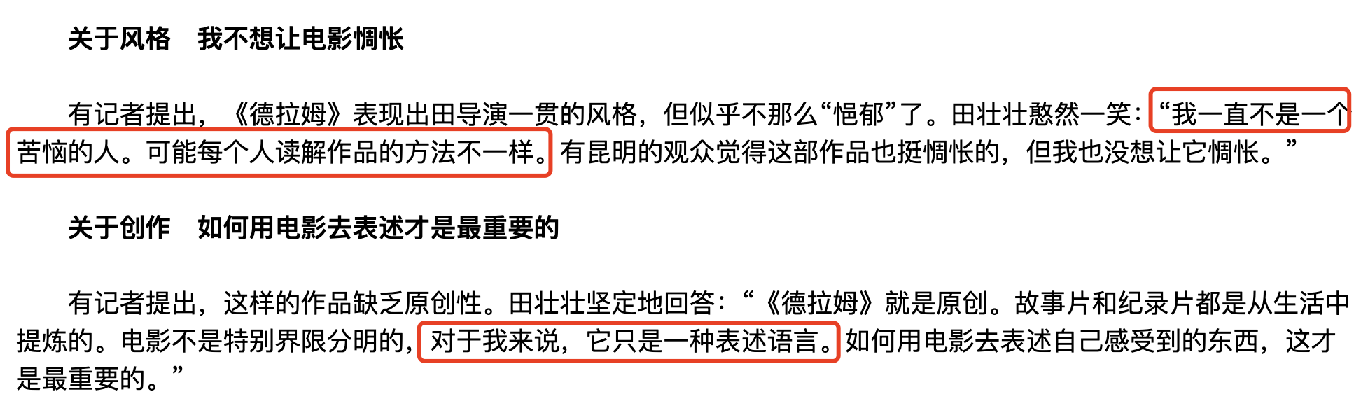 “我不告诉观众是与非,我也不告诉他对与错,我也不管好与坏,我就告诉你有这么一部电影,我的态度在这里全有了。”