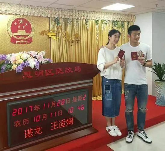 2017年11月27日晚求婚成功,11月28日谌龙和王适娴就在厦门思明区领证结婚,动作迅速。