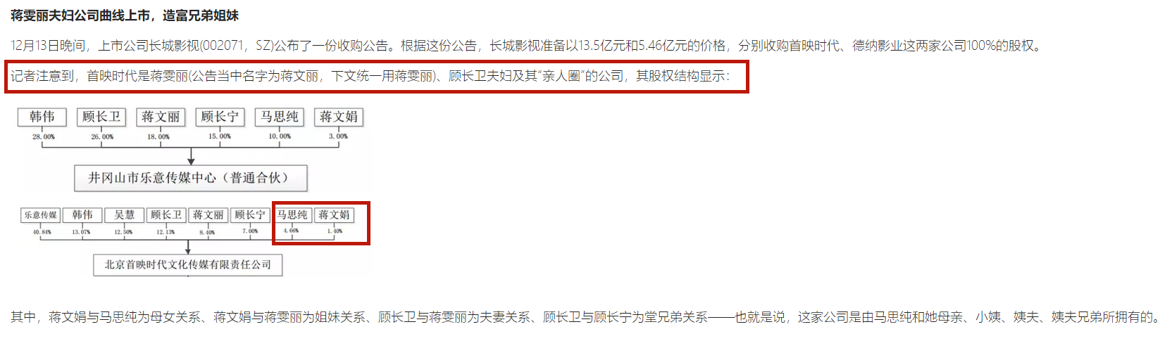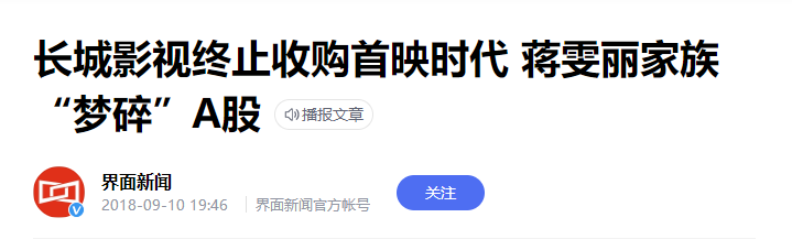 没过多久,市场上传出蒋雯丽、顾长卫夫妇名下公司被长城影视收购的消息,
