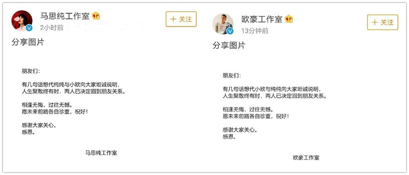 特地选在八月分手,或许是因为马思纯官宣恋情的时间是在七月。